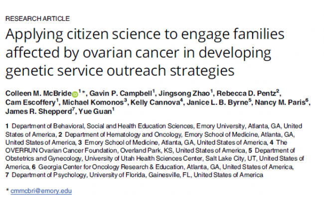 This journal article demonstrates how citizen science can be effectively scaled within the health sector by engaging families affected by ovarian cancer in developing genetic service outreach strategies. It outlines standardised methods for recruiting, training, and supporting citizen scientists to collect and interpret data, enabling broad, community-driven data collection in a relatively short timeframe. The approach showcases the scalability of citizen science beyond environmental fields, offering a model for applying participatory research in health promotion and genetic counselling initiatives.
