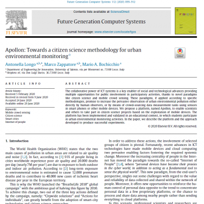 This journal article details the Apollon platform, a citizen science methodology for urban environmental monitoring that leverages mobile crowd sensing (MCS) and ICT technologies. It demonstrates how scalable citizen science initiatives can be achieved through the integration of low-cost sensors, mobile devices, and cloud computing, enabling widespread participation and real-time data collection. The platform's architecture supports both opportunistic and participatory sensing, making it adaptable to diverse urban contexts and capable of engaging large communities in environmental monitoring efforts.
