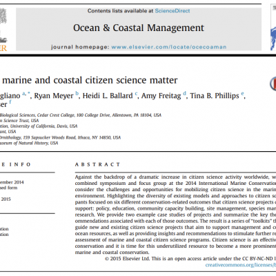 This journal article is provides detailed toolkits and case studies that connect citizen engagement to concrete marine and coastal conservation outcomes like policy change, site management, and species monitoring. By addressing challenges unique to marine contexts and outlining strategies for data quality, community trust, and collaboration with decision-makers, it provides a practical roadmap for designing scalable, impactful marine citizen science initiatives.