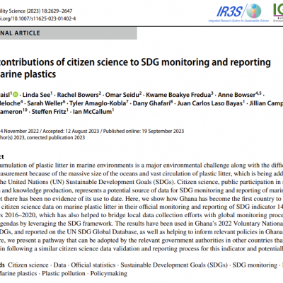 This journal article demonstrates a replicable pathway for integrating citizen science data into national and global reporting frameworks, using Ghana's beach litter monitoring as a case study. It provides a validated, scalable methodology that empowers citizen science initiatives to contribute directly to Sustainable Development Goal 14.1.1b (plastic debris density), making it a practical and impactful model for expanding citizen science in efforts to improve oceans health.